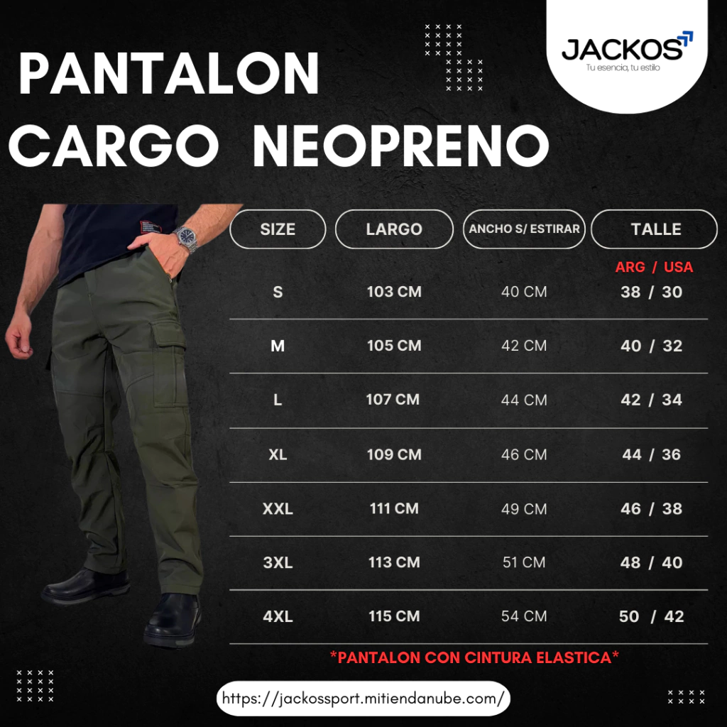 ¡Encuentra tu talla ideal! 🌟 Asegúrate de seleccionar el tamaño perfecto para tu Pantalón Cargo siguiendo esta práctica referencia: